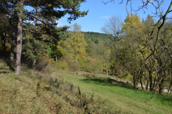 Auf der Wöllmisse bietet der Novaliswanderweg eindrucksvolle Aussichten in das Jenaer Umland. Von der Wöllmisse taucht der Weg dann wieder ein in den Wald und führt recht bald bergab und zwischen den sich öffnenden Feldern hindurch nach Schlöben.